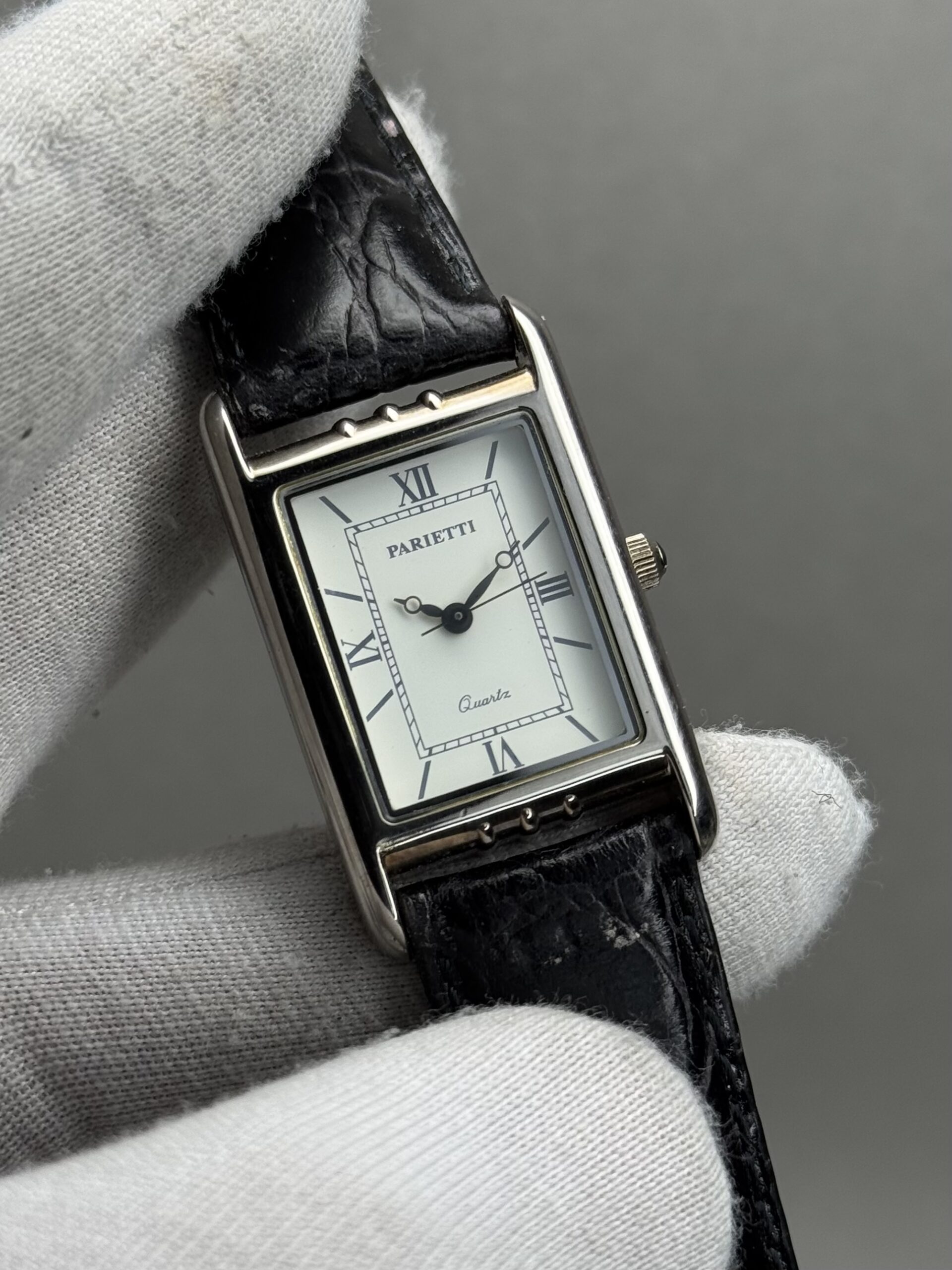 The Parietti PAG-011 Tank 23mm is a refined timepiece inspired by the classic rectangular “tank” design. With its 23mm tank-shaped case, this watch offers a slim, elegant wrist presence that stands out from traditional round dials.