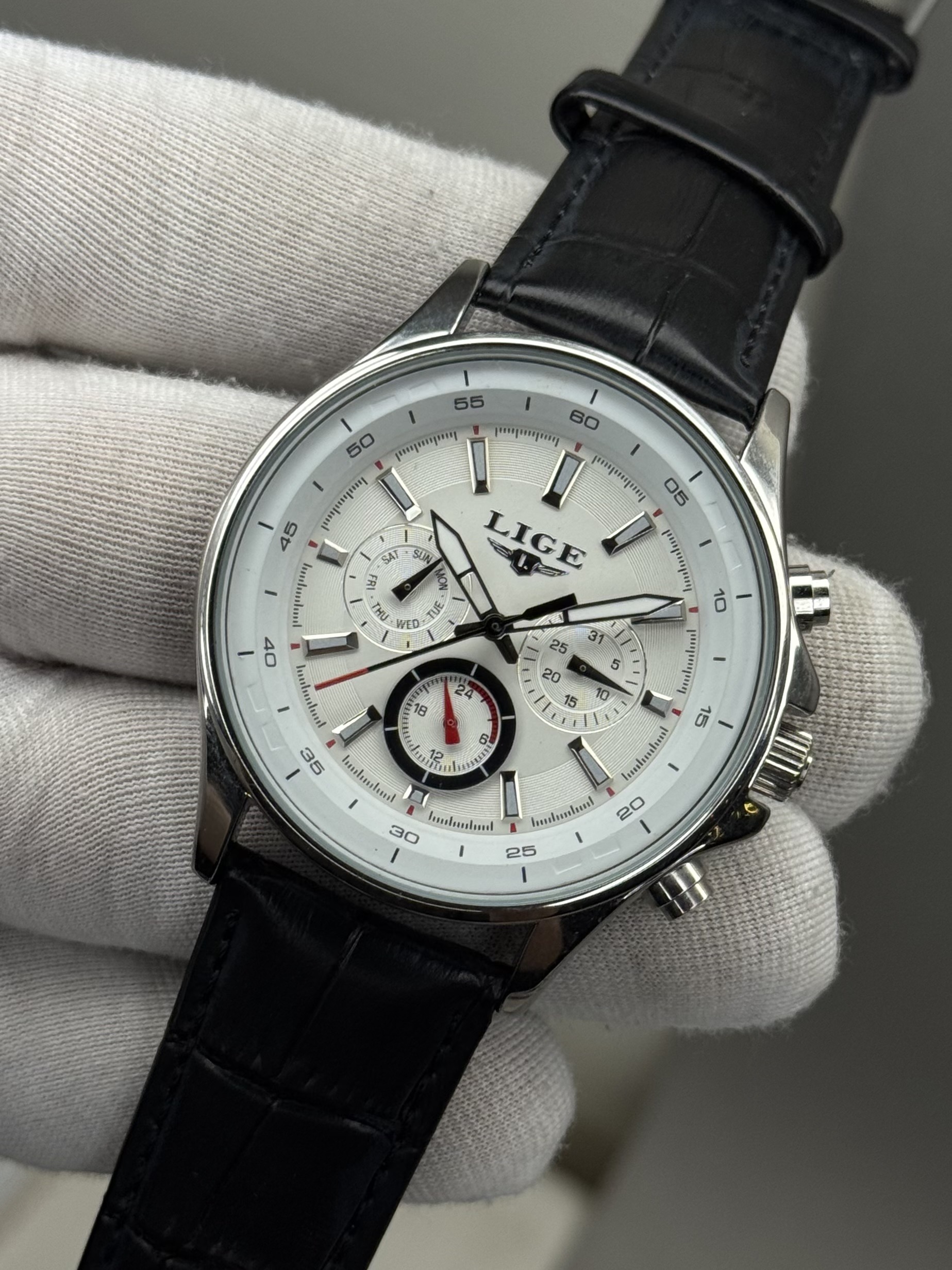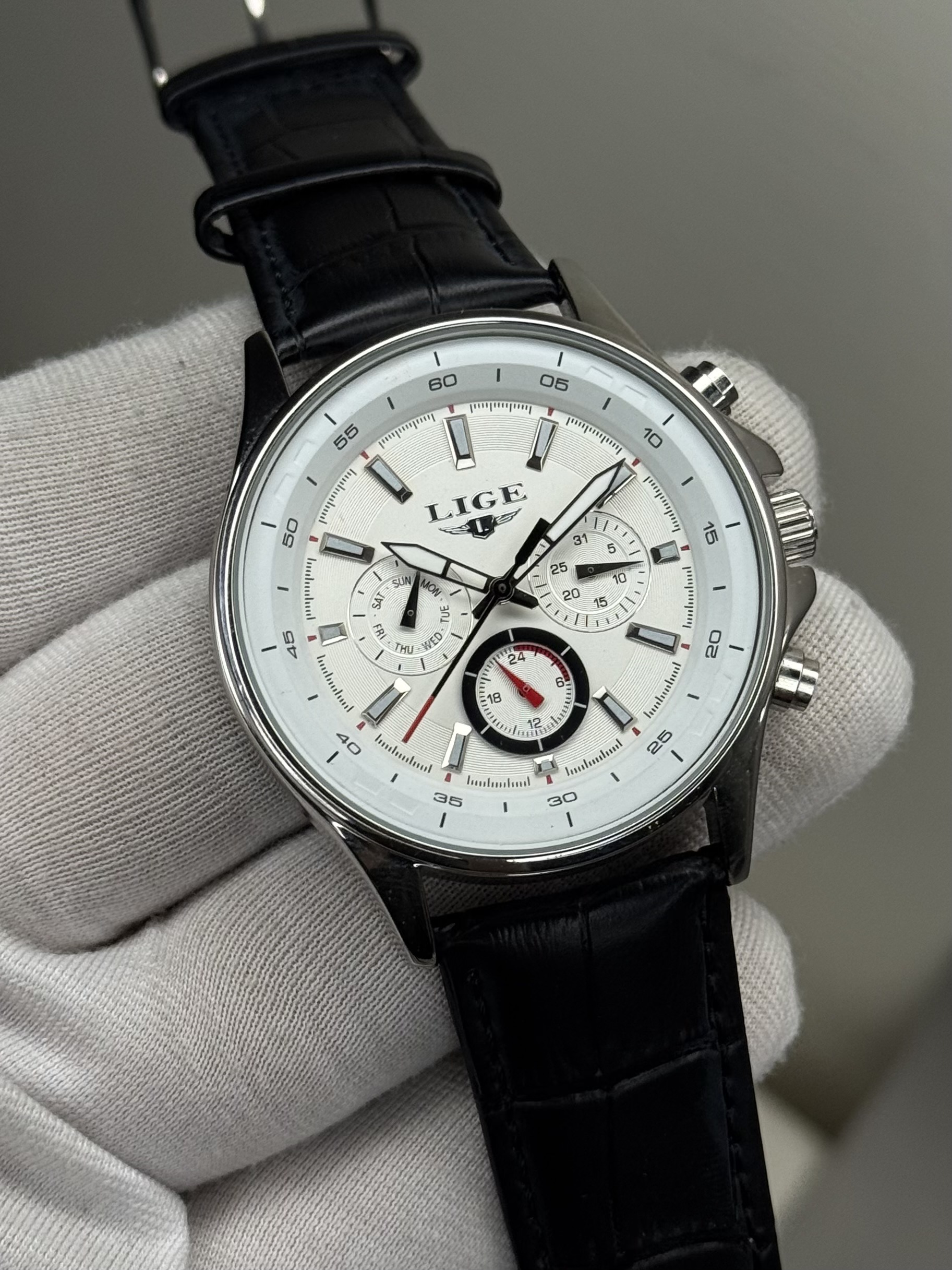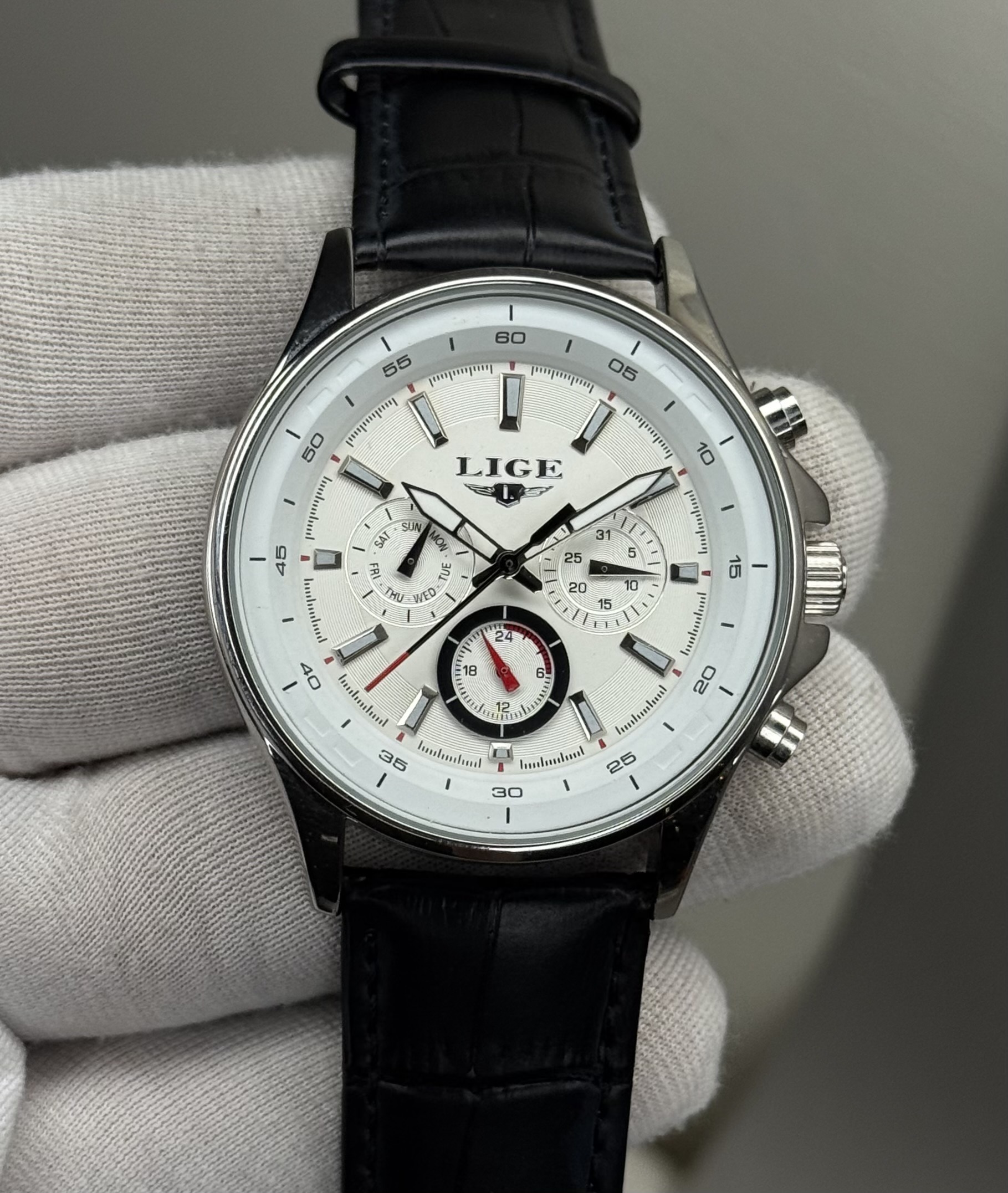 Featuring a clean white dial with striking red accents, paired with a black bezel and strap, this watch delivers a powerful sporty vibe.